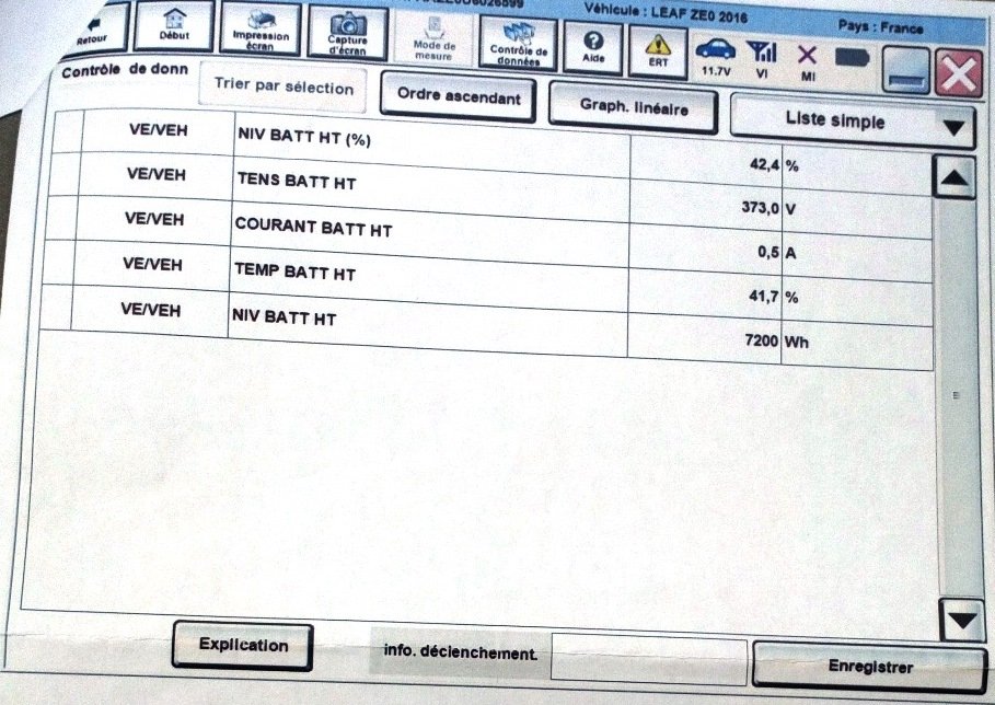 Para saber o estado de saúde da bateria só mesmo com o Leaf Spy, acho que o Consult III+ no modo normal não tem essa indicação.