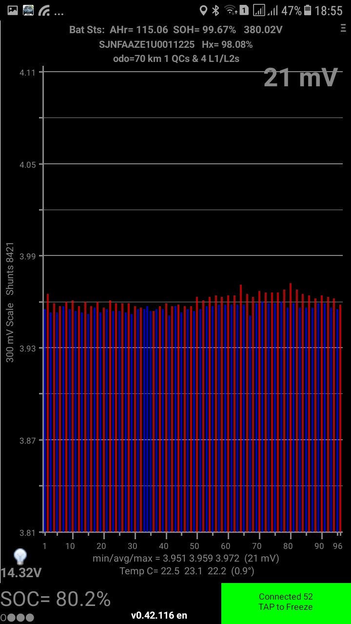 Dados Leaf Spy após ~60km e uma carga: