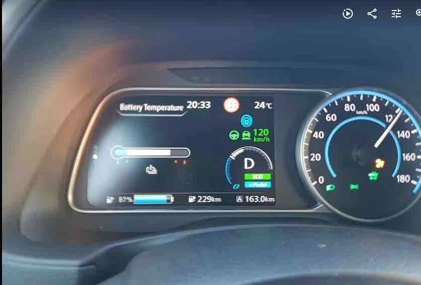 tendo a temperatura da bateria subido quase até à 1ª marca vermelha. Este troço de 160km foi feito em AE, com o propilot ligado sempre a uma
