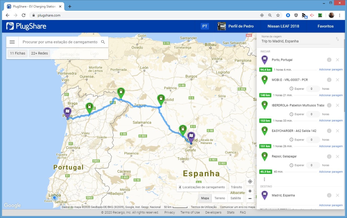 O "único" problema é que tanto no plugshare como no abrp estão a contar com PCR que ainda não existem, estão apenas em construção, como é o caso do Iberdrola na fronteira.