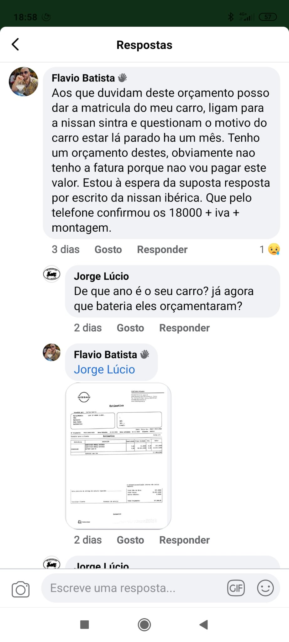 Se eu recebesse um orçamento daqueles resolvia as coisas com a Nissan, não ia para as redes sociais. Se eu tivesse razão, com certeza que a coisa seria resolvida.