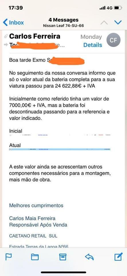 Apareceu um post no Facebook a falar no preço de substituição de bateria de 30000€.